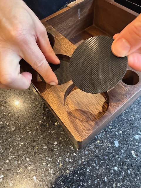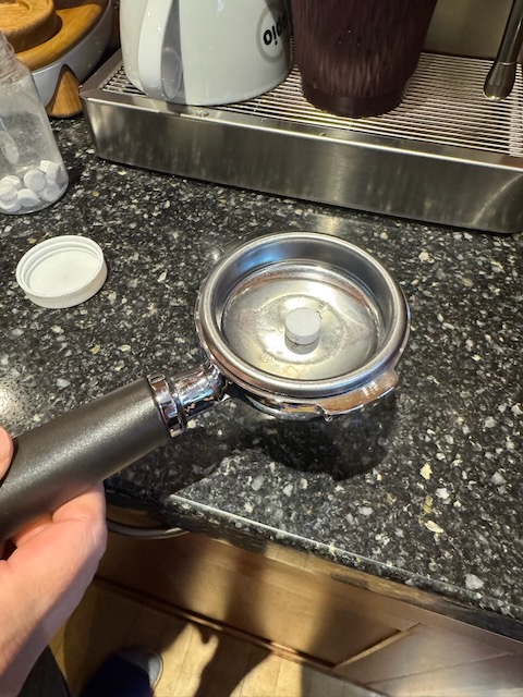 Once the flush cycle is complete, rinse the portafilter, dry off, then place back into cabinet