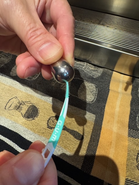 Clean the steam wand tip's holes with a toothpick or dental tool